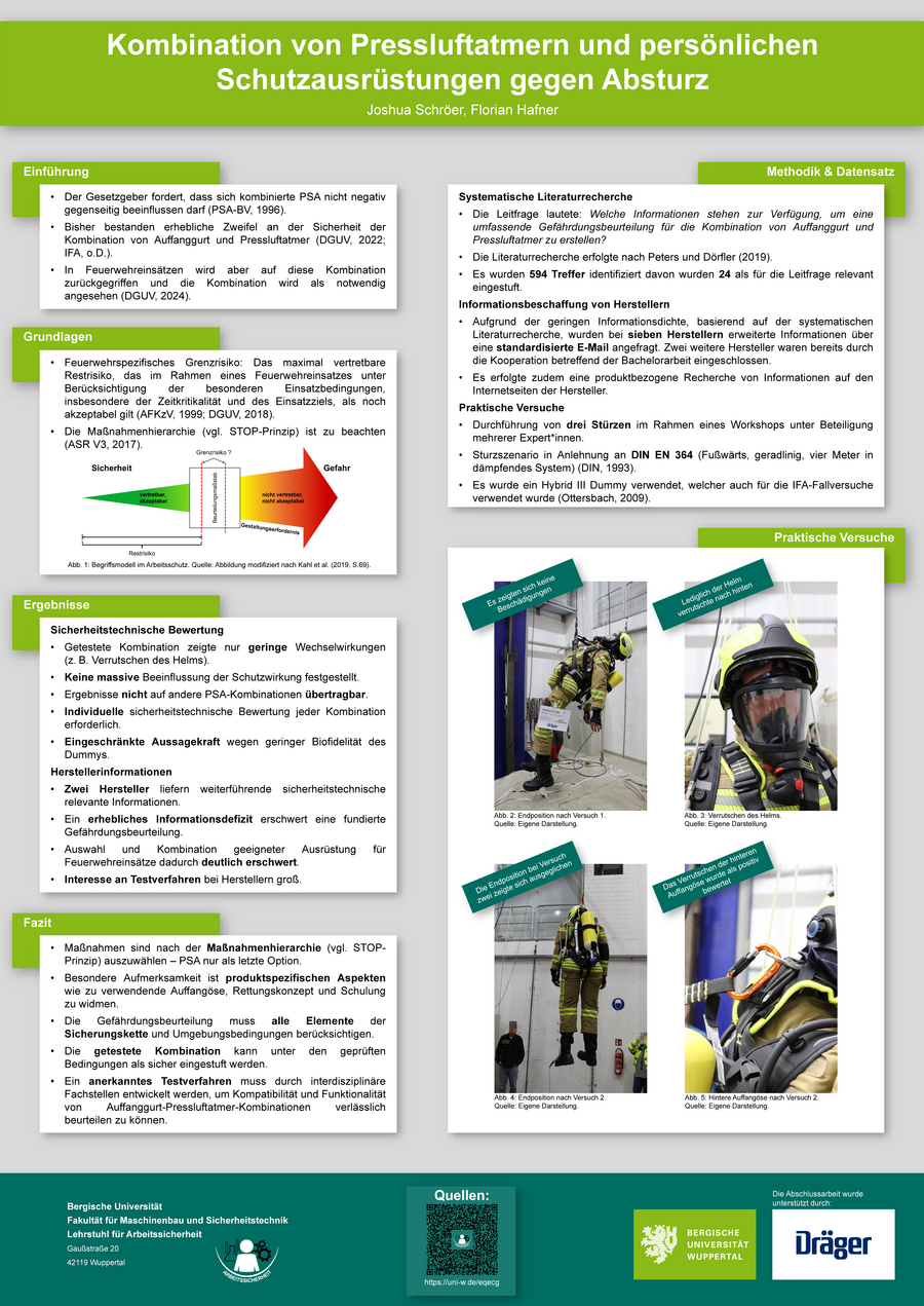 - Kombination von Pressluftatmern und persönlicher Schutzausrüstung gegen Absturz
